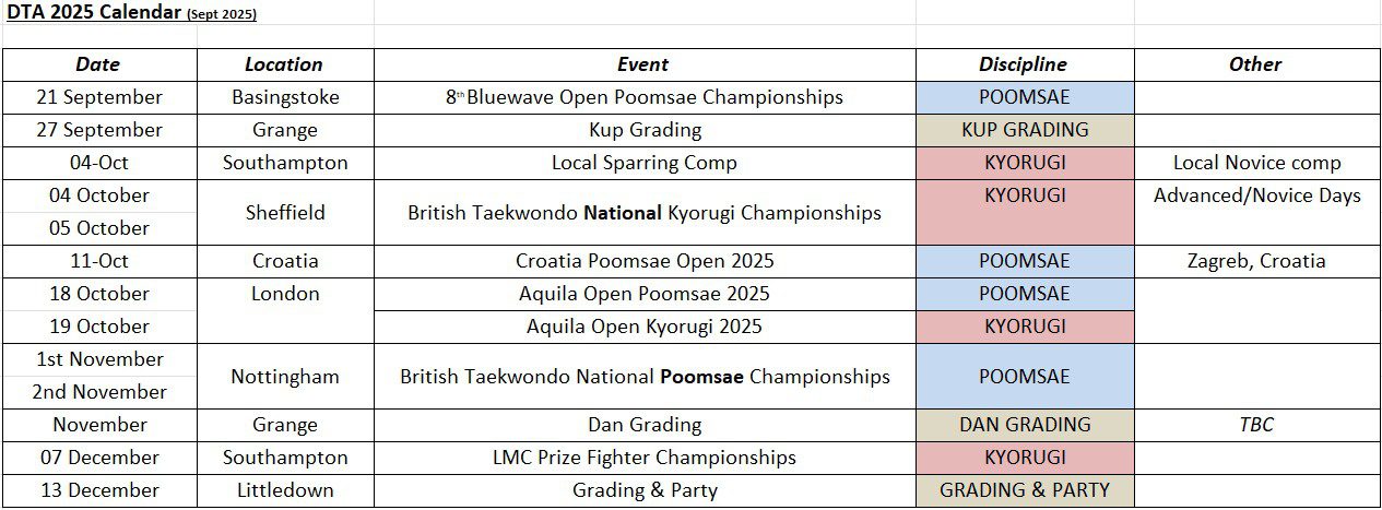 So we can all better plan we have tried to set dates for the competitions we will likely take teams to, and dates of Kup and Dan Gradings.